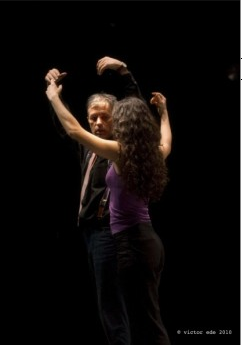 festival « Fragile danse », cette représentation clôt une tournée qui a débuté en octobre dernier et s’est déroulée à Paris (Maison des Métallos) et à Lyon (Maison de la Danse). Sur une chorégraphie du grand Israel Galván – un des plus talentueux danseurs de flamenco de sa génération- et une écriture de Gaspard Delanoë, la Libanaise Yalda Younes et ce dernier offrent au public une drôle de conférence dansée. Le thème ? Une illusoire et énième conférence de paix dont les mots sonnent creux. Face à l’impuissance des mots, le corps prend le relais. « Côte à côte sur scène symétriquement, une femme, un homme, deux pupitres, sur fond de conférence géopolitique. Elle – simple messagère ou représentante légale ? –, s’exprimant en arabe, énonçant un plan de paix, entre utopie et réalisme froid. Lui, traduisant, méthodiquement. Mais les mots ne suffisent pas. Il faut des symboles. Un hymne. Un drapeau. Une posture. Dont acte. Mais les symboles ne suffisent pas. Il faut jeter son corps dans la bataille. Peut-on traduire un corps ? Peut-on danser un plan de paix ? » (G. Delanoë).