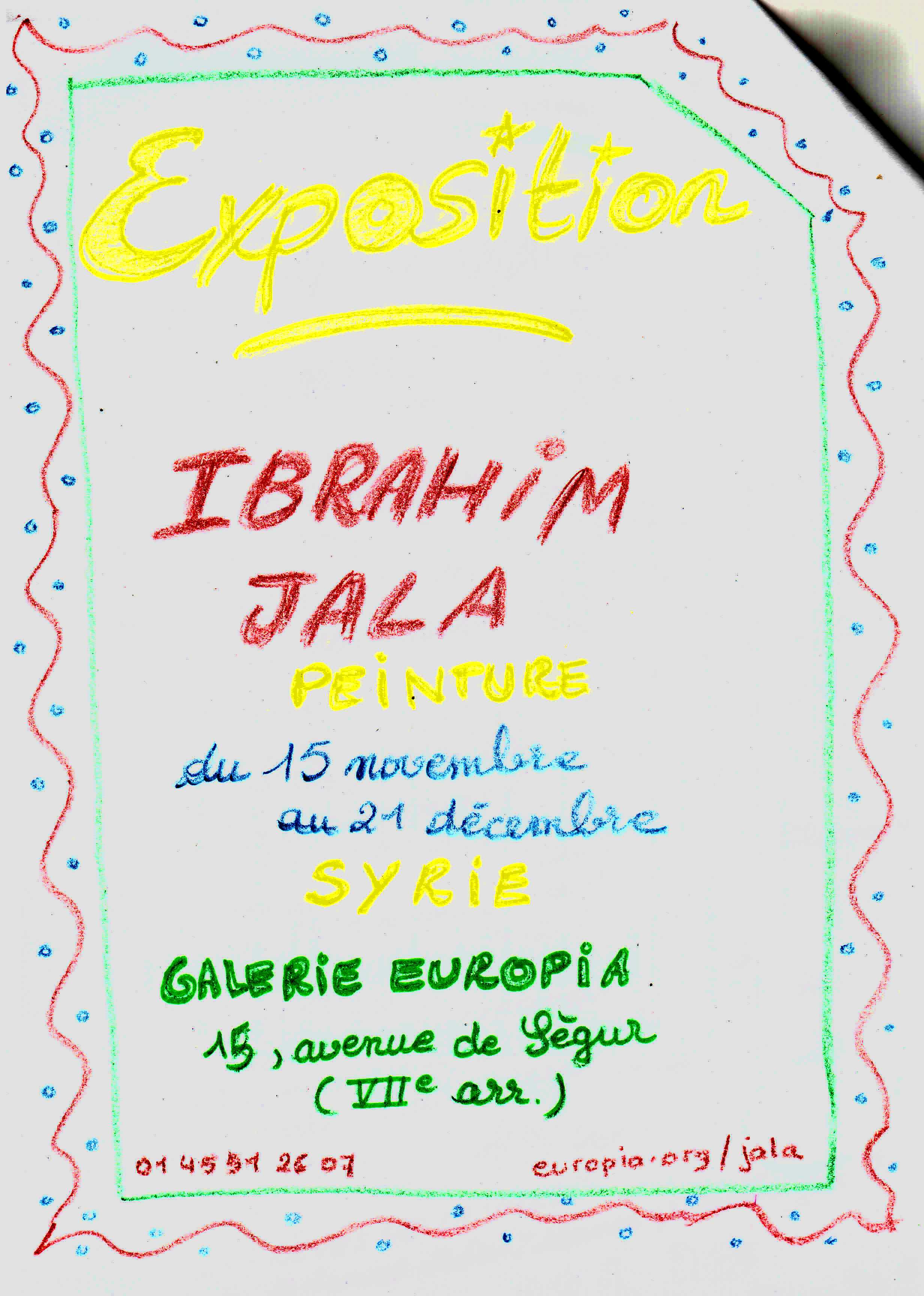 Originaire de Kafranbel, Ibrahim Jala est arrivé en France à 26 ans pour étudier aux Beaux-Arts de Paris. Peignant ses tableaux « comme une phrase musicale », l’artiste joue les superpositions de couleurs et de matières autour d’un de ses motifs fétiches, le carré inspiré des motifs de l’art arabe traditionnel, et lui insuffle une vibrante modernité.