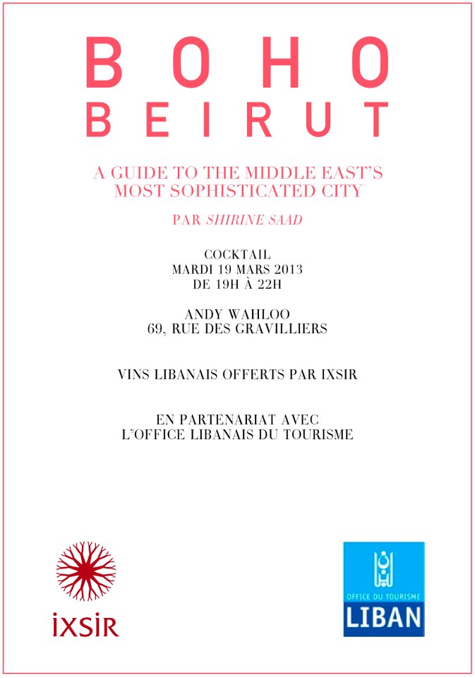 Journaliste munie de culture et de mode de vie chevronnés, habitant à Brooklyn, Saad voyage autour du monde à la quête de nouveaux talents et modes. «Quand je voyage, je demande toujours aux habitants locaux des conseils d’experts et je passe mon temps à leur compagnie afin de découvrir leurs endroits préférés.» Ce guide combine un point de vue d’initié aux clairvoyances journalistiques. Saad partage son carnet d’adresses personnelles avec ses lecteurs et les introduit aux personnalités dynamiques de la ville- concepteurs, architectes, galeristes, restaurateurs/chefs, artistes, musiciens et même les propriétaires des boites de nuit. Le guide est à l’image de Saad et allie images et textes grâce à la collaboration de l’auteur avec Laurent El Khoury et Tanya Traboulsi, respectivement graphiste et photographe. « BOHO BEYROUTH, vu et lu, incarne la nouvelle Beyrouth ». Avec les contributions de : Bernard Khoury, Charles Kettaneh, Gordon Campbell Gray, Hussein Hadid, Karen Chekerdjian, Karim Haidar, Nada Debs, Olivier Gasnier Duparc, Olivier Gemayel, Rosie Abou Rous, Sandra Dagher, Sharif Sehnaoui, Sophie Tabet, Tala Hajjar, Yousef Harati et Youssef Tohme.