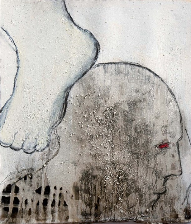 Mondialement connu pour ses peintures monumentales, l’artiste présente ici une série d’œuvres récentes, des collages, en petits formats carrés. »Explorer de nouvelles techniques dans un petit format m’a permis de me concentrer sur l’essentiel » dit Binebine. Influencé par des artistes tels Goya, Picasso, et Bacon, Mahi Binebine explore sans cesse la résistance et la dignité de l’humain face à l’horreur et au désespoir ».