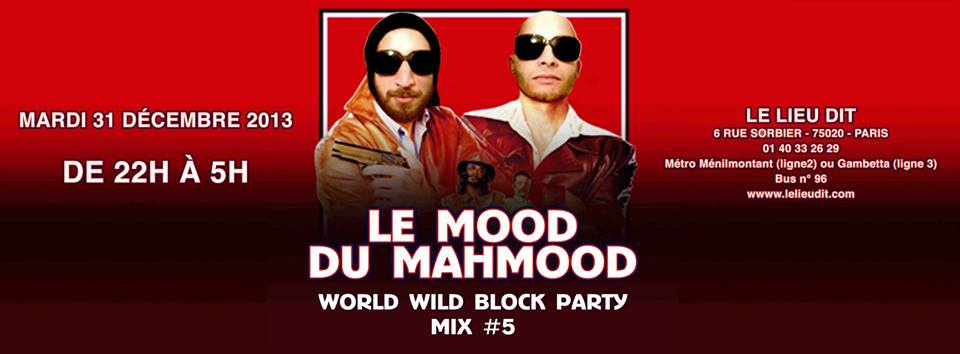 Fin de l’Année 2013 ! Pour fêter ça, Les Mahmood en remettent une couche, plus que jamais déterminés à vous faire danser sur les grooves électriques du monde entier ! Nous revenons à nos vieux amours, dans le lieu qui nous a accueilli la première fois, le très sympathique restaurant « Le Lieu-Dit », dans le vingtième. Cette fois, le mix prendra une tournure désinvolte et terriblement rythmée avec une proposition en deux temps :