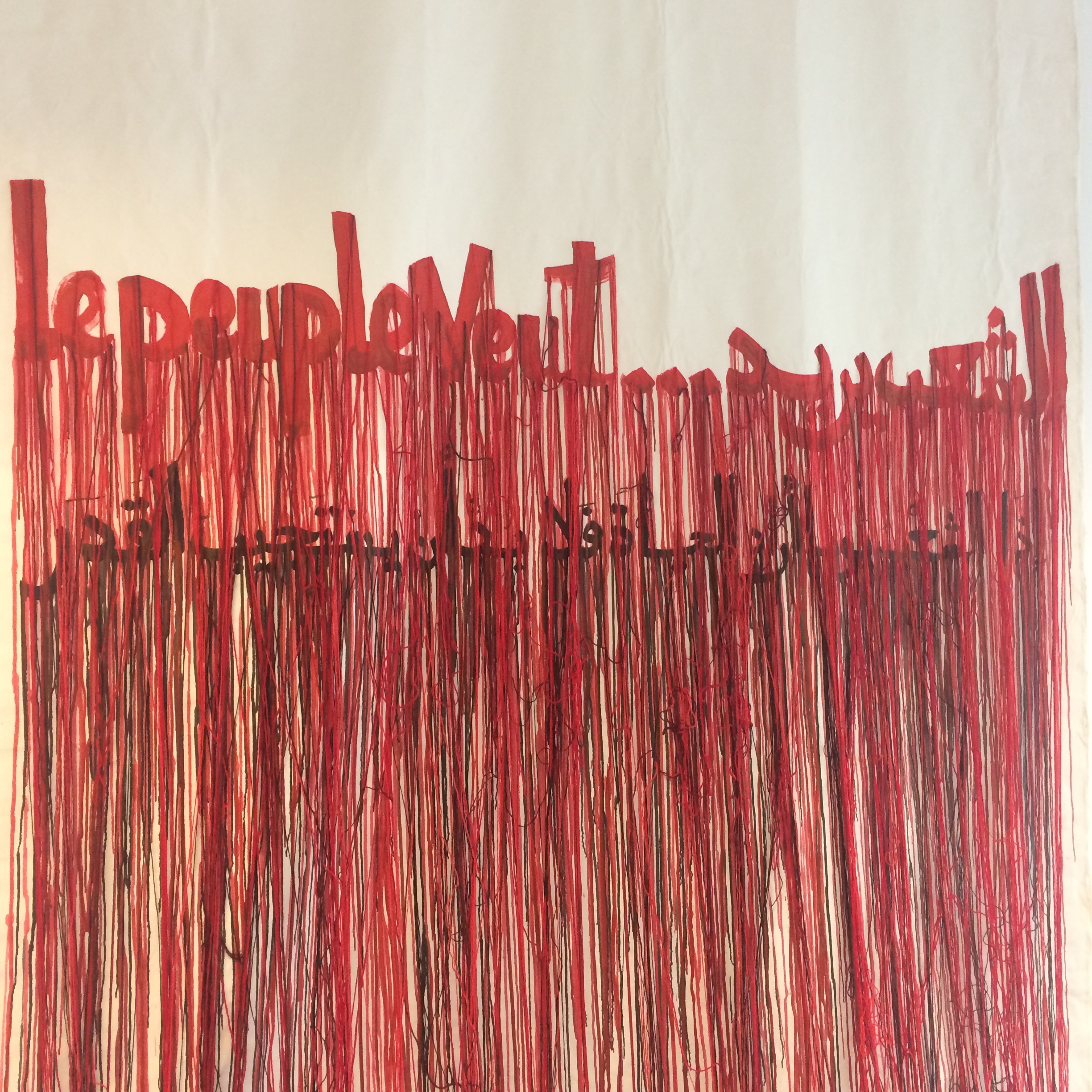 Ce travail justement s’axe autour de thématiques importantes dans la société marocaine qui se retrouvent néanmoins sous d’autres horizons : le rôle et la place des femmes (La Mariée), les aspirations démocratiques individuelles et collectives (Le Peuple Veut)…En employant des objets simples et ordinaires en apparence triviaux, l’artiste tisse un lien entre art et vie quotidienne. Roses séchées, fils de soie, transparents, métalliques, perles, tulle, tissus, papier, aluminium, crépon, paillettes, calque, pompons, cristaux, dentelle, ouate de coton, branches d’arbre…ces matériaux vendus par des hommes à une clientèle essentiellement féminine se font également passerelle entre deux sphères souvent séparées.