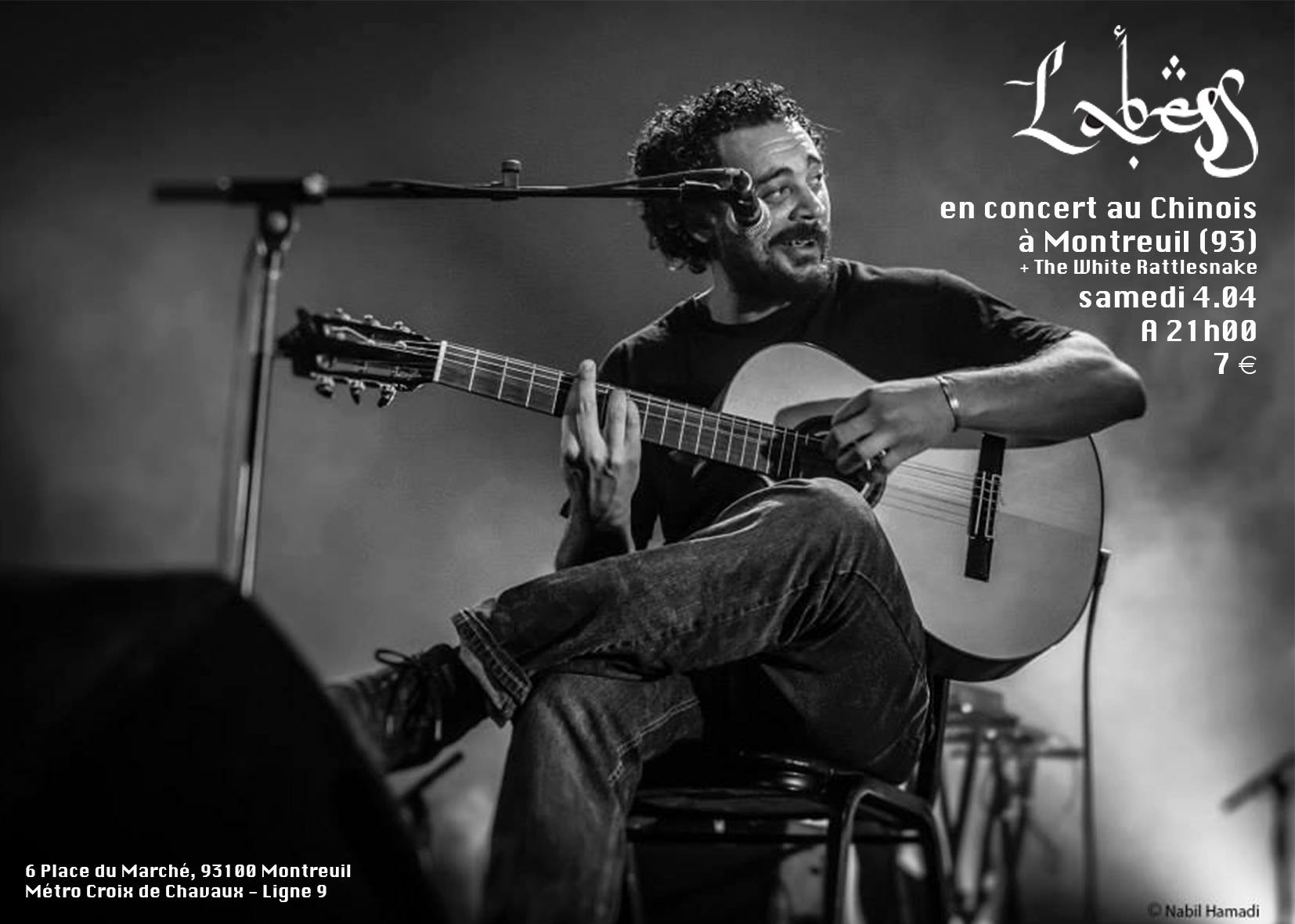 Le groupe LABESS qui signifie « tout va bien » en arabe, vous propose de découvrir la beauté et la richesse de sa musique. Fusion de rumba gitane, flamenco et musiques traditionnelles d’Afrique du nord tels que le gnawa et le chaabi. Qu’il chante en arabe, sa langue maternelle, en français ou espagnol, Nedjim Bouizzoul raconte de sa voix expressive des histoires empreintes d’authenticité qui oscillent entre réalisme et espoir, douceur et fureur. Il chante l’exil en retraçant les joies et les détresses qui parsèment le parcours de la terre d’origine à la terre d’accueil, et vice-versa. À travers sa poésie, il propose une réflexion sur la diversité culturelle et sur la nécessité de vivre unis, malgré les différences.