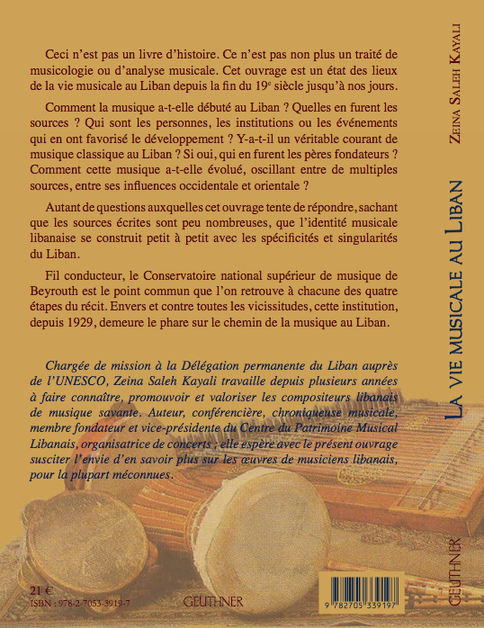 Dans le cadre des « Journées du Liban », Zeina Saleh Kayali présentera et dédicacera son ouvrage « La vie musicale au Liban » (éditions Geuthner) vendredi 15 mai à 18h, Halle des Blancs manteaux, 48 rue Vieille du Temple, 75004 Paris.