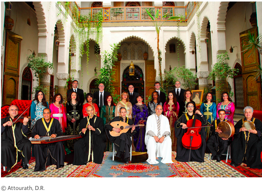 Ensemble impressionnant et érudit, Takht Attourath, mélange d’une belle chorale, d’orchestre instrumental et de solistes excellents, continue d’enchanter ses publics avec ses fidèles complices : Adel Shams El Din (percussion riq), Miloudi Benslimane (derbouka), Salem Benani (violon), Imed Ben Ammar (qanûn), Fadhel Messaoudi (oud), El Bachir Zaïd (ney), Samih Souissi (violoncelle) et Fawaz Baker (contrebasse).