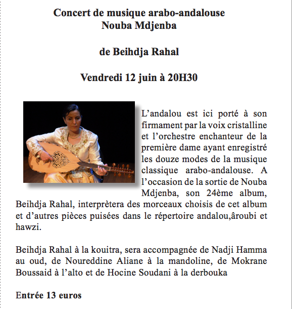 MUSIQUE. VENDREDI 12 JUIN 2015 A 20H30. CENTRE CULTUREL ALGERIEN (XVe). 13 €.