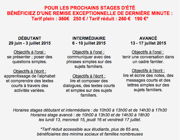 STAGES. JUIN/JUILLET 2015. INSTITUT DES CULTURES D’ISLAM (XVIIIe). DETAILS DES TARIFS CI-DESSOUS.